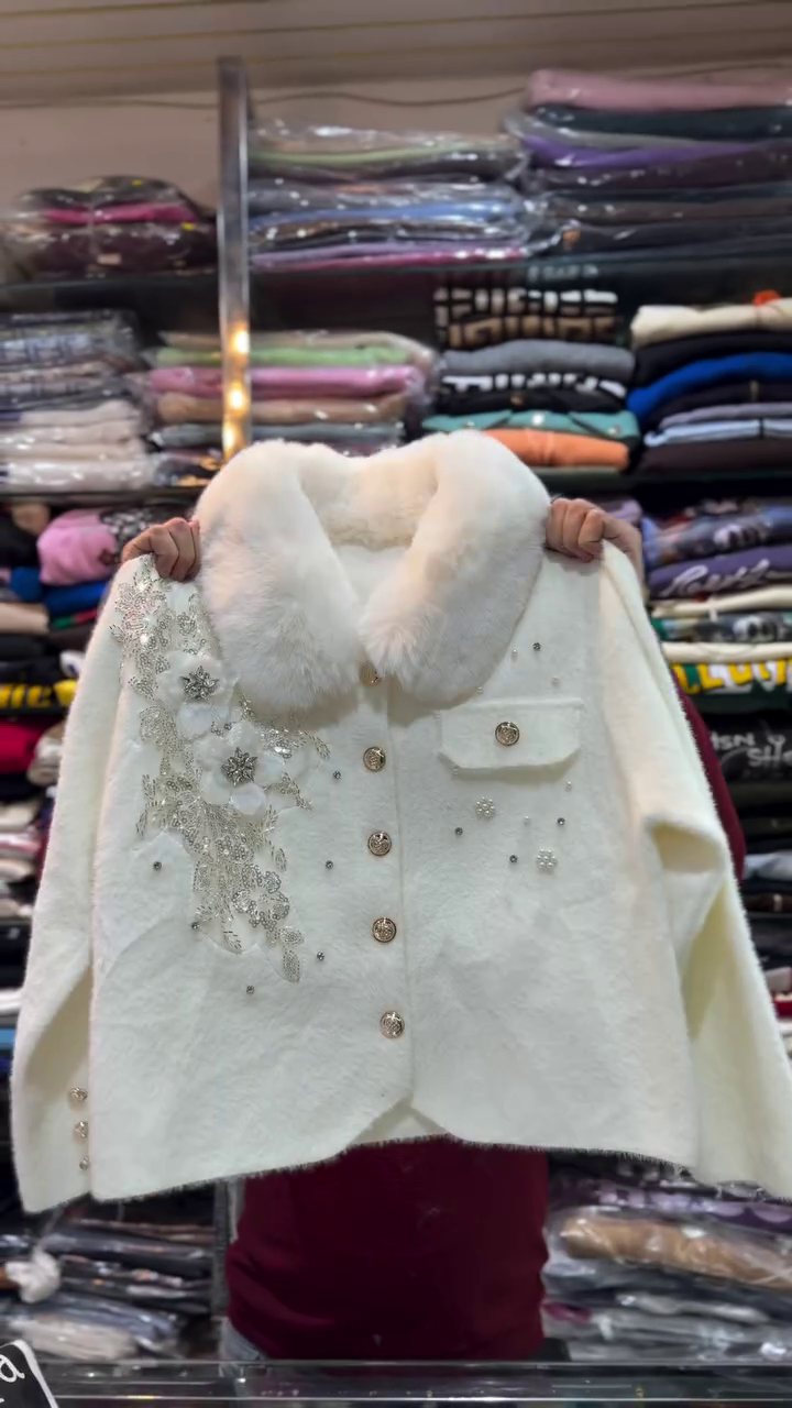 Pair with slim trousers πŸ‘–, boots πŸ‘’, and a clutch πŸ‘œ for a look that’s equal parts warmth and glamour. With Frosted Bloom, winter becomes your runway πŸŒŸβ„οΈ.