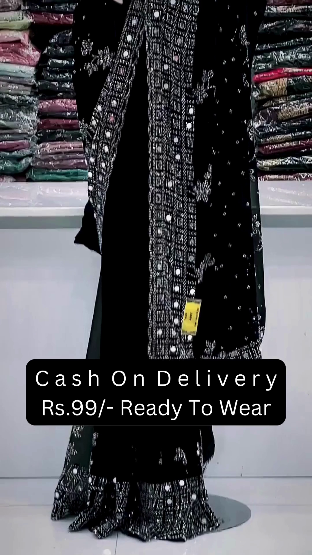 Be the first to review “πŸ–€βœ¨ Elegant Midnight Black Ready-to-Wear Embellished Saree with Intricate Silver Detailing βœ¨πŸ–€”