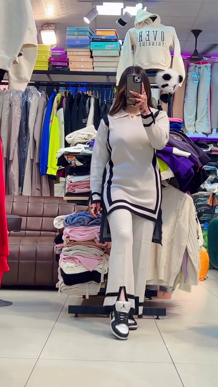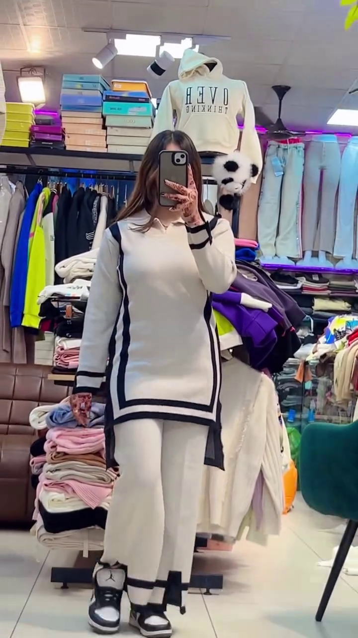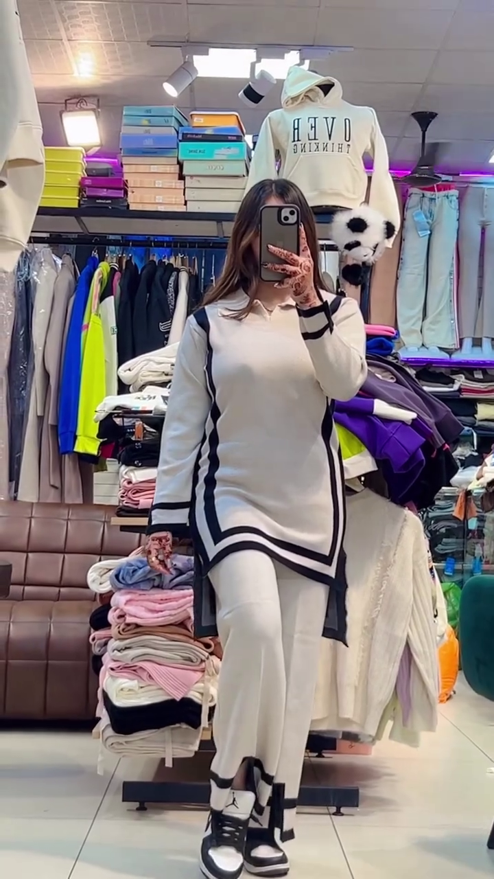 Step out with confidence in this ultra-chic ivory two-piece set, boldly accented with geometric black border detailing for a head-turning effect π€π€