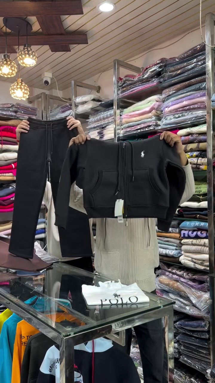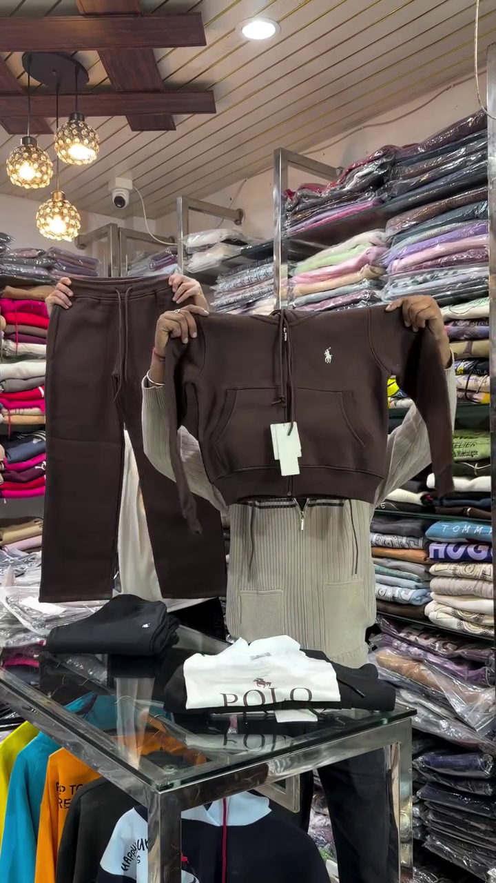 This chocolate brown co‑ord set 🤎 is designed for ultimate comfort with a stylish streetwear edge. The top is a cropped hoodie with a front zipper, drawstring hood, and kangaroo pockets, giving a sporty and practical feel. The matching jogger pants have an elastic waistband with drawstring, cuffed ankles, and a relaxed fit that allows easy movement. The rich brown color is flattering on all skin tones and can be styled with sneakers, chunky boots, or even sliders for different looks. Crafted from soft, warm fabric, this set is perfect for travel, casual outings, or lounging while still looking put‑together ❄️. You can also mix and match each piece with other items in your wardrobe—pair the hoodie with jeans or the joggers with basic tees.
