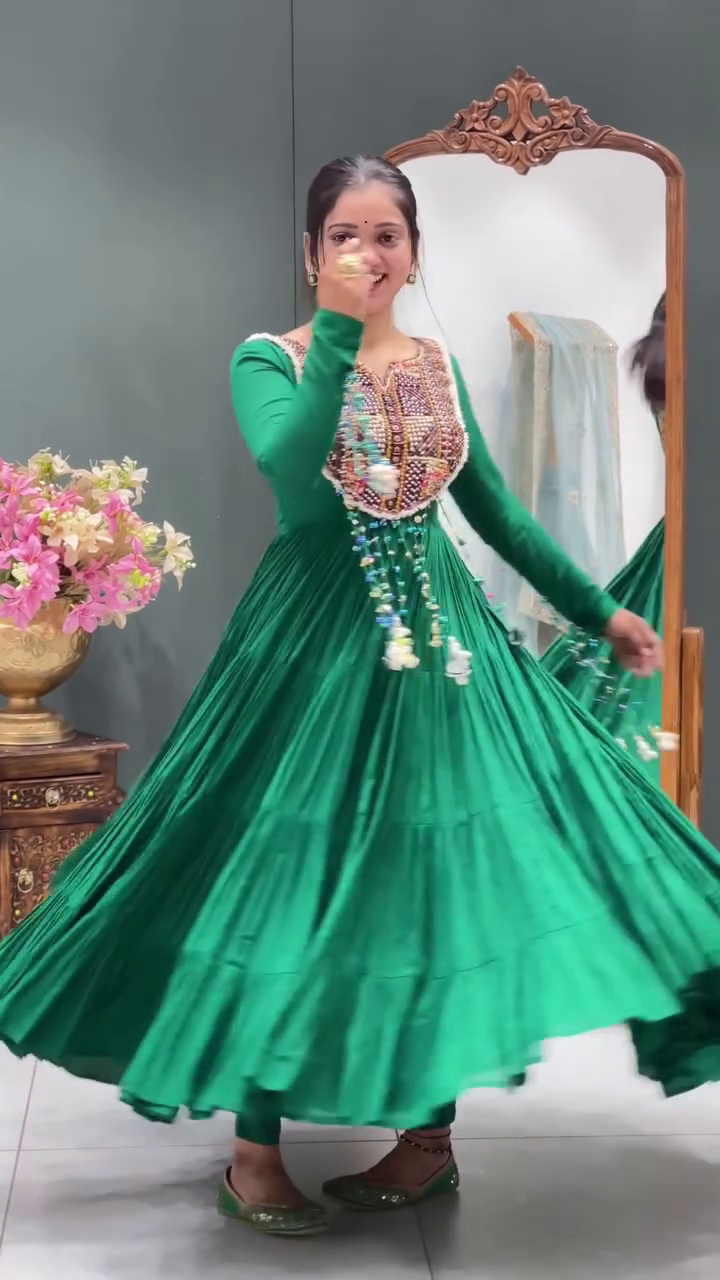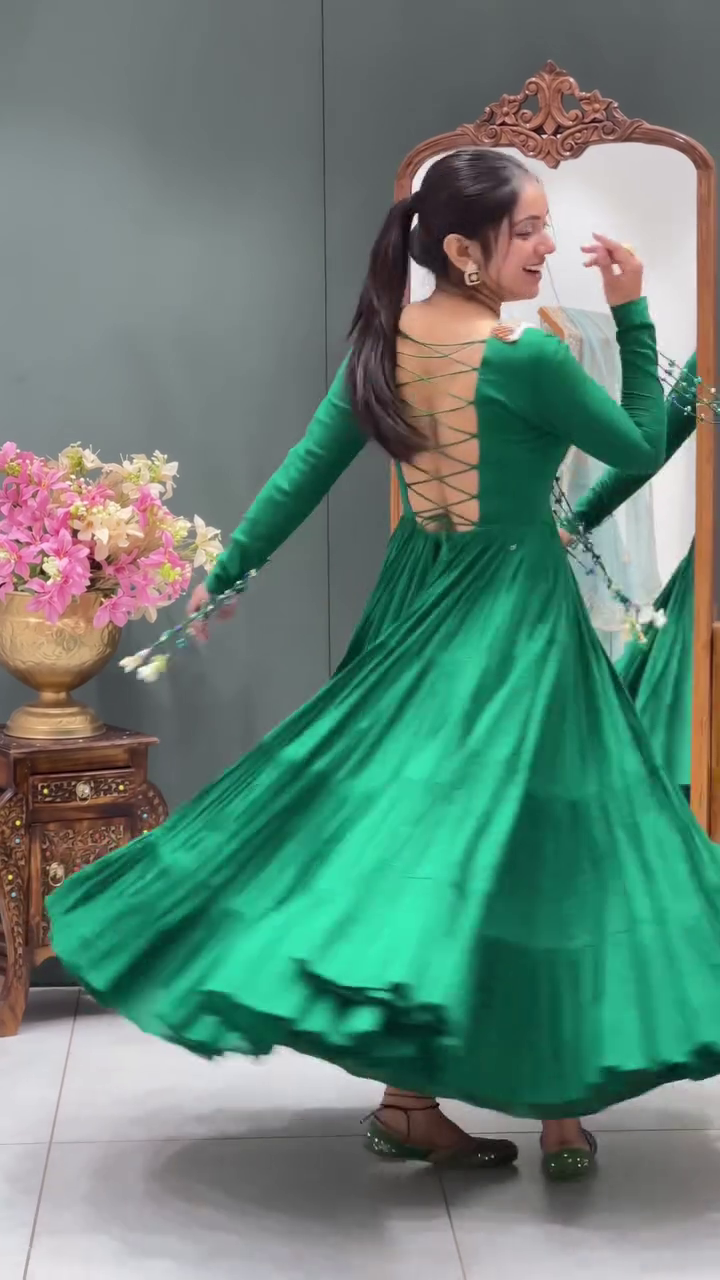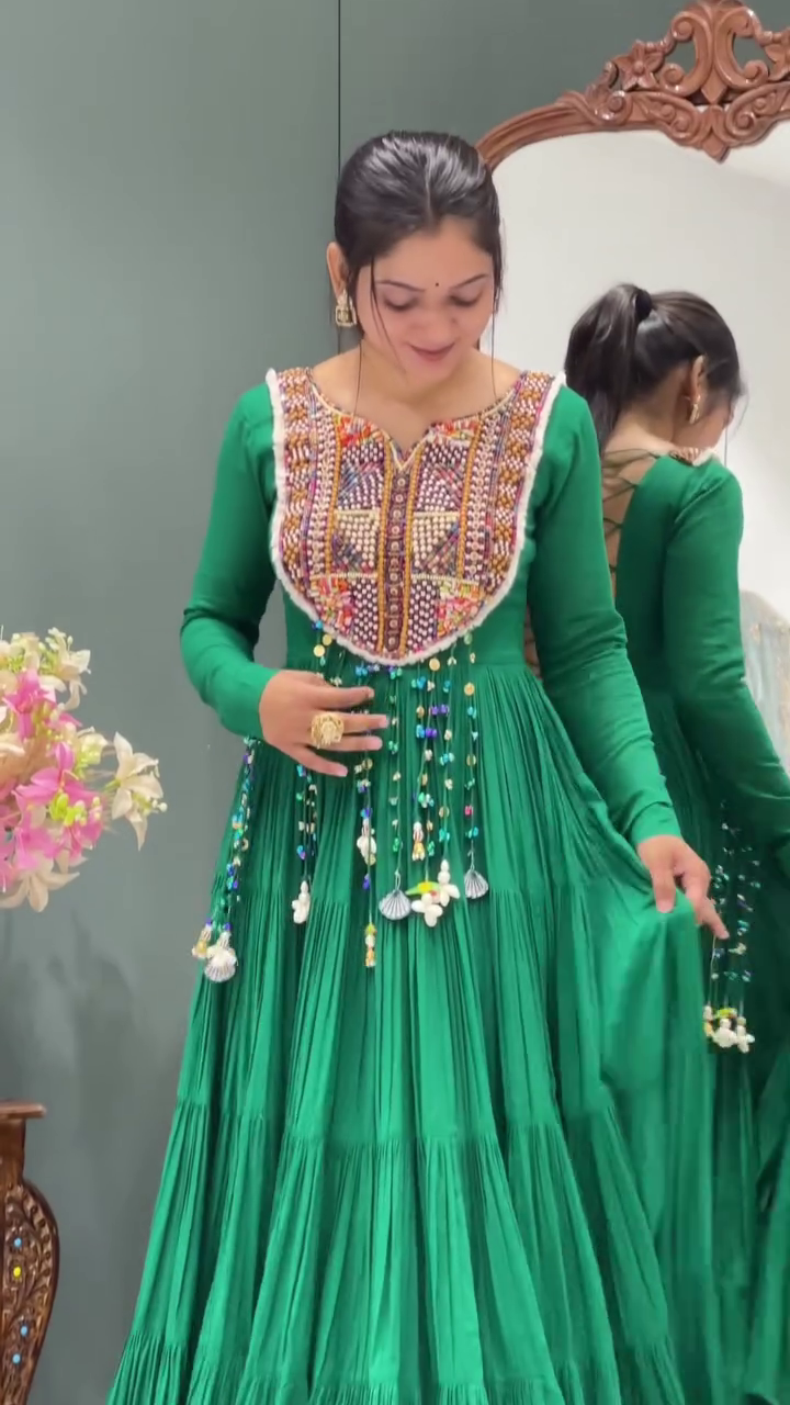 🌟 The swinging tassels below the yoke bring movement and charm, making this a striking choice for occasions such as weddings, Diwali, or sangeet celebrations. The anarkali’s full flare provides beautiful draping and twirl, while the fitted bodice maintains a regal silhouette. Pair it with golden jhumkas and statement rings for festive perfection.