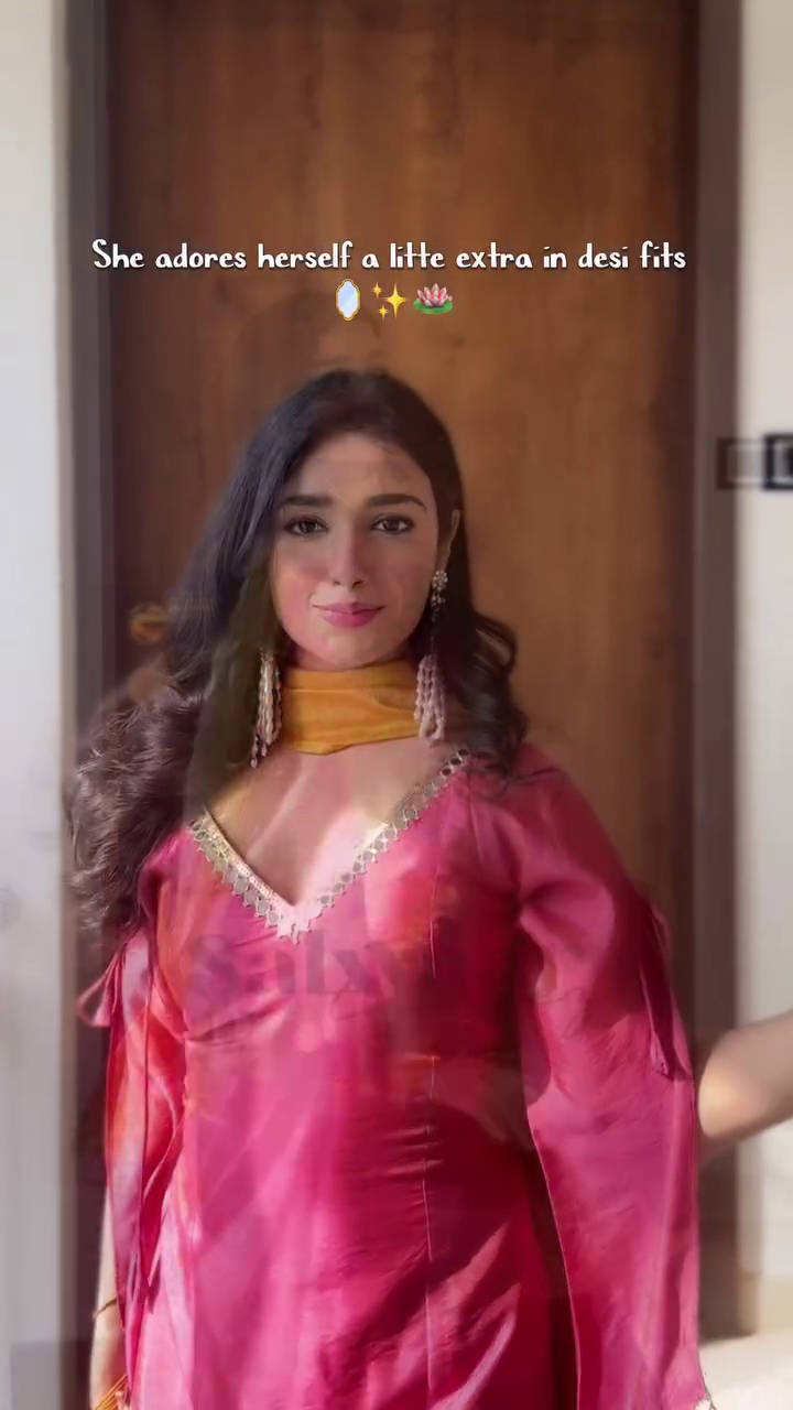 Bottom: Coordinated wide‑flared sharara pants that swish elegantly while walking or dancing; very flattering and comfortable.