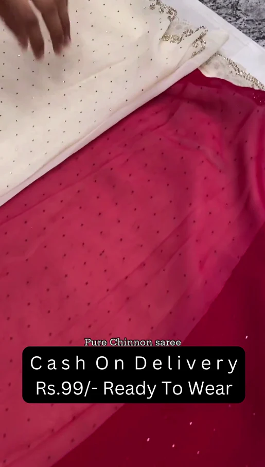 + Free ShippingLaunching An Amazing Design In Pure Chinnon Saree At An Amazing Price Of ₹2150/- Only
