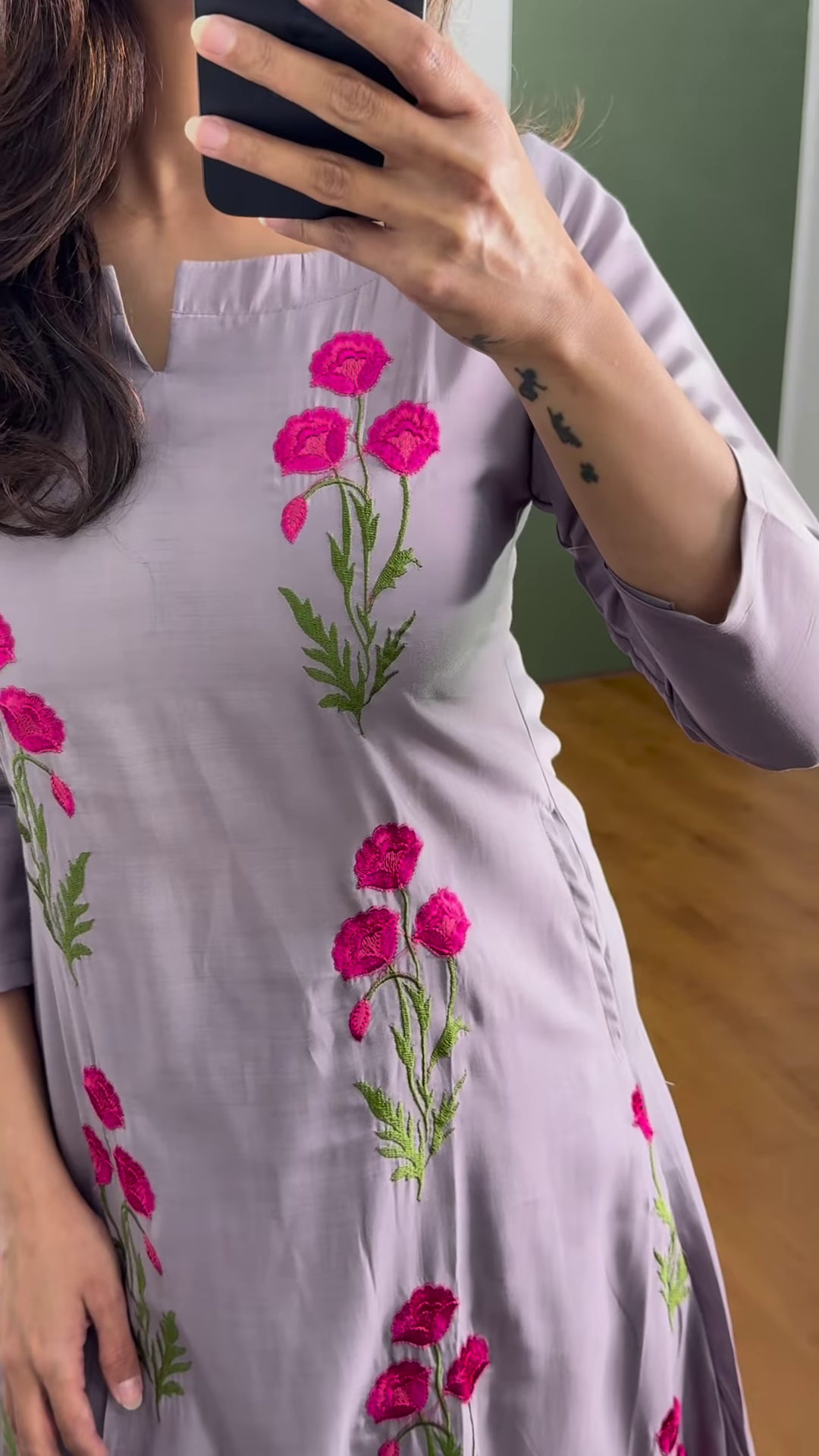 Lavender Bloom Embroidered Kurti – Grace in Every Thread 🌿