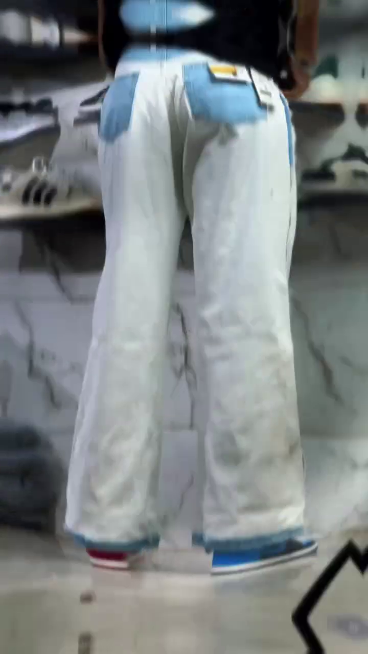 Paired with vibrant sneakers and a black top, this outfit is a masterclass in contrast and creativity π§’π. Whether you’re browsing sneaker shelves or dancing through downtown, these jeans are your canvas of self-expression ποΈποΈ.