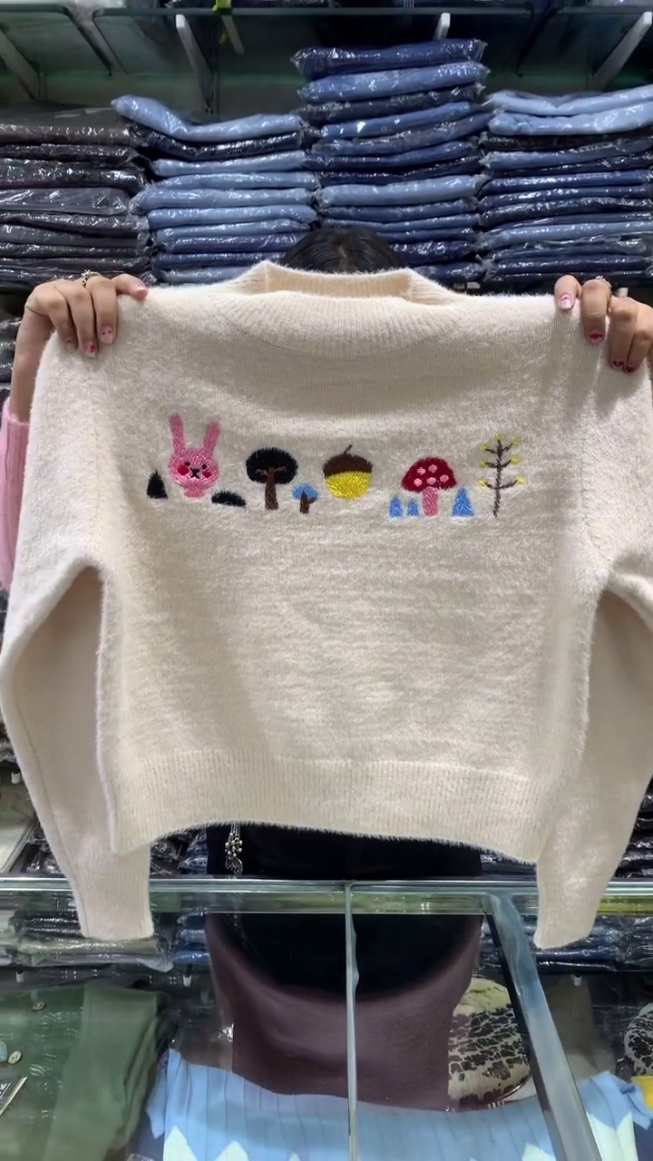 Be the first to review “Soft Fuzzy Pink Sweater with Embroidered Animal & Nature Motifs”